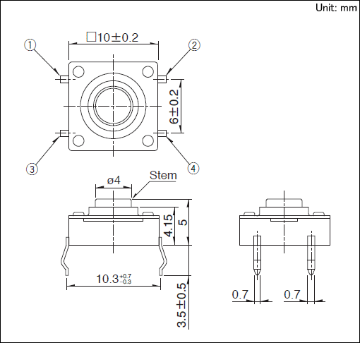 Alpsalpine SKQBASA010 price ALPS SKQB 10mm Square Water-proof Type (Snap-in) SKQB Series - Minimum order unit (pcs.)