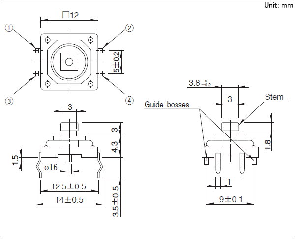 Alpsalpine SKQEACA010 price ALPS SKQE 12mm Square Long-life Type (Snap-in) SKQE Series - Dimensions (Unit: mm)