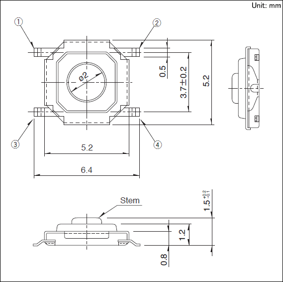 Alpsalpine SKQGADE010 price ALPS SKQG 5.2mm Square Low-profile Type (Surface Mount) SKQG Series - Number of packages (pcs.)