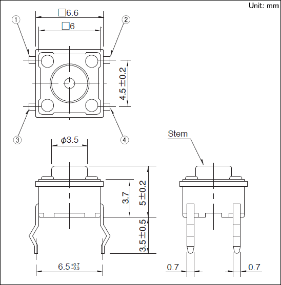 Alpsalpine SKQJABA010 price ALPS SKQJ 6.6mm Square Type (Snap-in) SKQJ Series - Number of packages (pcs.)